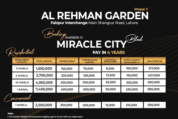 Those on a limited budget who want to own a profitable property, live in luxury in Lahore, and eventually develop their own homes could invest in Al Rehman Garden Phase 7 in Lahore. Phase 7, a freshly released new phase of Al-Rehman Garden, has been approved by LDA. The Al-Noor Orchard Housing Scheme is close by.