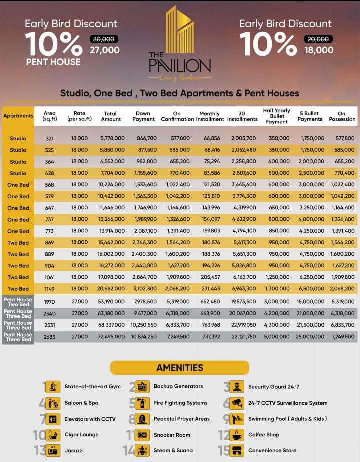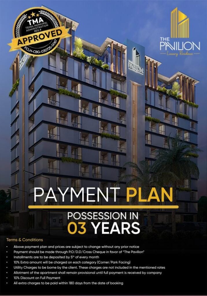 Welcome to Pavilion Luxury Residences, a signature address in the heart of Bahria Town Lahore. Developed through the esteemed collaboration of Aasif Developers, Brick by Brick Developers, and 3B Developers, Pavilion is a rare fusion of architectural elegance, modern comfort, and refined living.