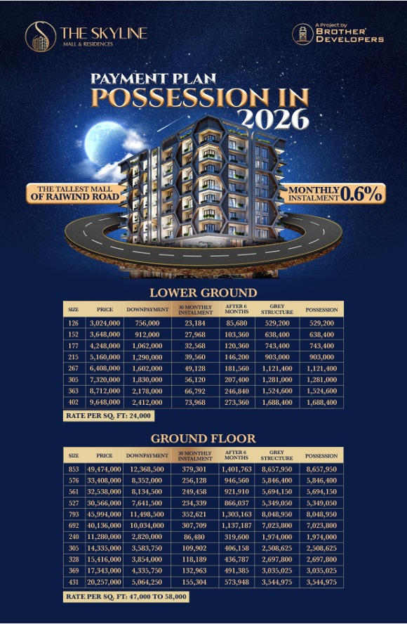 Brother Developers is bringing an intriguing new mixed-use project to Lahore, Pakistan: the Skyline Mall. The project will have more over 1.8 million square feet of retail, commercial, and residential space, all conveniently located on Main Raiwand Road in Al-Kabir Town. The Skyline Mall itself is the development’s focal point.