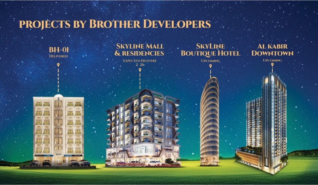 Modern studio, one-bedroom, and two-bedroom luxury apartment homes with sizes ranging from 480 to 1,060 square feet will be available at The Skyline Residences. The apartments in Al-Kabir Town will provide a luxurious living environment.